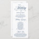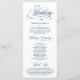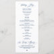 Elegantes Hochzeitsfeierprogramm in 4 x 9 Zoll (lang) Karte, in Navy Blue thematisiert. Es ist mit Scrollakzent entworfen, der personalisiert werden kann mit benutzerdefiniertem/personalisiertem Text für Ihr Brautparty, Zeremonie Details, Gedenkhinweise und Dankeschön-Nachricht.