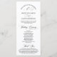 Elegantes schwarzes Skript, Hochzeitszeremonie Programm in 4x9 Zoll (lang) Karte. Es ist mit Scrollakzent entworfen, der personalisiert werden kann mit benutzerdefiniertem/personalisiertem Text für Ihr Brautparty, Zeremonie Details, Gedenkhinweise und Dankeschön-Nachricht. Wenn Sie weitere Programmkarten-Typen und -Größen suchen, durchsuchen Sie bitte unseren passenden Programmkartenabfrageabschnitt.