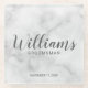 Klassischer Eleganter Marmor Moderne Script Personalisiert Trauzeugen Untersetzer mit personalisierten Trauzeuge Namen im modernen Kalligraphie Schriftart Stil mit Titel und Hochzeitdatum in modernen Sans Serif Schriftart Stil auf weißem Marmor Hintergrund. Auch perfekt für Trauzeugin, Blütenmädchen, Brautmutter, Trauzeugen, Trauzeuge und mehr.