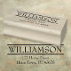 Eine personalisierte Gummi-Briefmarke mit zwei Regeln, die Ihren Namen über Ihren Rücksendeadresse-Text stellen.