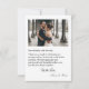 Beenden Sie Ihre Hochzeitsfeier mit der gleichen Raffinesse, Eleganz und Stil, mit der sie begonnen hat. Diese elegante Schwarz-Weiß-Kalligrafie-Foto-Hochzeits-Dankeskarte ist sorgfältig für das Paar gestaltet, das Tradition, zeitlose Ästhetik und die dauerhafte Kraft einer persönlichen Note schätzt. Ob Ihre Hochzeit ein luxuriöses Black-Tie-Event in der Stadt oder eine intime, stilvolle Zeremonie war, diese Schreibwaren-Serie bietet die perfekte Grundlage, um Ihre herzliche Dankbarkeit auszudrücken.