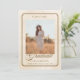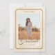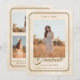 Eine klassische, einfache Ankündigung oder Einladung, um Ihren Absolventen zu feiern und Ihre Fotos zu präsentieren. Platz für ein Hauptfoto auf der Vorderseite und 3 Fotos plus Text auf der Rückseite, auf einem beigen, marmoriert aussehendem Hintergrund mit einem mocha-farbenen Rahmen.