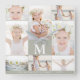 Klassische FotoCollage mit Monogramm, Name und Jahr, Grau Tinted Sage und White Clock.