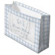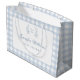 Niedlich hellpastellblau Französisch inspiriert Baby Boy Dusche Geschenktaschen mit elegantem Gingham Muster.