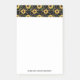 Sticky Noten mit einem eleganten und stilvollen Muster. Hübsche gelbe Sonnenblumen und grüne Blätter umgeben von zarten Goldketten. Schwarzer Hintergrund.