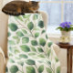 Diese gemütliche Eukalyptusblattvlies-Decke bietet eine weiche Textur und ein perfektes Maß an Wärme. Besonders angenehm ist es, sich in der Nähe des Sofas zu befinden, sodass die Familienmitglieder es bei Bedarf benutzen können, um sich beim Fernsehen warm bleibe. Die Decke zeigt eine Aquarellillustrierung matter grüner Blätter auf weißem Hintergrund. Darüber hinaus kann diese Fleecedecke auf Ihrem Bett verwendet werden, auf dem das attraktive Blatt gedruckt wird. (AI-Bild von Susang6)