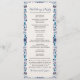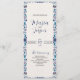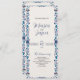 Dieses mexikanische Navy White Floral Elegant Classic Wedding Program zeigt einen reichen, senkrechten Rahmen, der von mexikanischer Volkskunst inspiriert wird. Stilisierte Blumenmotive und botanische Motive in Blau-, Weiß- und aquamarin-Tönen vor einem texturierten cremefarbenen Hintergrund. Die symmetrischen Ränder an den links und rechten Rändern sind mit skurrilen Blume, Blätter, gewölbten Weinreben und traditionellen Folkloreelementen wie Marakas mit geometrischen Mustern geschmückt. Das Zentrum ist leer verlassen und bietet einen eleganten Textbereich, der sich ideal für Programme, Menüs, Einladungen oder feierliche Ankündigungen eignet.