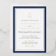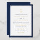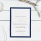 Die zeitlose Seehocheinladung in klassischen Farben und Schriften, die schicke Einladung an der Küste, mit einer marineblau blauen Grenze und einem Marineblatt mit einem goldenen Folienanker und goldenen Akzent Schrift.