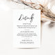 Unsere einfache, schwarz-weiße Hochzeitszimmerkarte ist perfekt für die Extradetails Ihres Events. Eine schöne Verbindung eines schwarzen Kalligraphie-Schriftartes mit einem schlichten und sauberen Text auf weißem Hintergrund sorgt für ein klassisches Aussehen. Einfach und schnell, um sich mit Details Ihres Empfangs, Geschenke, Unterkunft und/oder anderen Details, die Sie mit Ihren Gästen für Ihre Hochzeit teilen möchten, zu individualisieren.