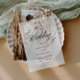 Diese anspruchsvolle Vellum Hochzeitseinladung bietet ein elegantes Kalligraphie-Skript-Overlay, das einen raffinierten und zeitlosen Look schafft. Die halbtransparente Vellumschicht ermöglicht es einem Foto der persönlichen Verlobung, durch das sie glänzt, indem sie eine sentimentale Touch hinzufügt und gleichzeitig das Design luxuriös und formell behalte. Dieses Hotel ist ideal für klassische, elegante Hochzeiten in Schwarz-Krawatte und bietet eine perfekte Balance zwischen moderner Personalisierung und traditionellem Stil.