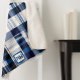 Dieses Deckendesign zeichnet sich durch ein klassisches kariertes Muster in marineblau, himmelblau und weiß aus und schafft so einen zeitlosen und vielseitigen Look. Die symmetrische Anordnung der Streifen und Karos verleiht ihm eine fett und dennoch raffiniert gestaltete Ästhetik, die sich für verschiedene Einstellungsbereiche eignet. In der unteren Mitte der Decke wird ein Monogramm innerhalb eines quadratischen Rahmens sichtbar angezeigt, was eine personalisierte Touch bietet. Die Initialen können individuell auf die individuellen Vorlieben abgestimmt werden, was sie zu einem perfekten Geschenk oder persönlichem Sake macht.