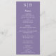 Lass deinen Gästen, dass sie wissen, was auf der Speisekarte für ihren Hochzeitsempfang steht, und verwende dieses klassische lavender wedding themed menu.
