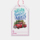 Diese wunderschönen Weihnachtsgeschenktafeln zeigen einen Vintagen, roten LKW, der mit einem Baum geschmückt ist und die Dekorationen für den Urlaub verkörpert. Der fröhliche Text der "Merry and Bright Nights" fügt eine festliche Touch hinzu, die perfekt zum Geschenken geeignet ist.