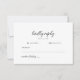 Diese elegante schwarz-weiße Hochzeitskarte zeichnet sich durch ein puristisches minimalistisches Design mit moderner Kalligraphie und klassischen Serifendetails aus. Die Gäste können leicht ihre Anwesenheit angeben, ihre Namen angeben und die Anzahl der Teilnehmer notieren. Die perfekte Koordination mit einer zeitlosen Hochzeitsbriefpapier-Suite für ein zusammenhängendes, raffiniertes Aussehen.