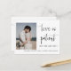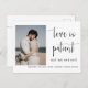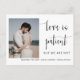 Diese Einladung zur Hochzeitsankündigung Postcard besticht durch eine elegante Kalligraphie und einen Schriftart mit einer einfachen serifenlosen Schrift mit einem Foto für einen puristischen, modernen Look, der eine wunderschöne Art ist, über Ihre kommende Hochzeit zu informieren. Die Einfachheit dieses Designs fügt Ihrer Hochzeitsankündigungskarte eine Touch Eleganz hinzu. Es funktioniert mit vielen Hochzeitsthemen und ist definitiv eine großartige Ergänzung zu Ihrer Hochzeit. Passen Sie einfach die Namen und den Wortlaut in ein paar einfachen Schritten an und personalisieren Sie die Einladung Postkarte mit Ihrem Foto des glücklichen Ehepaares, um Ihrer Postkarte eine angenehme persönliche Touch zu geben. Bitte beachten Sie: Die elegante Kalligraphie der Formulierungen "Liebe ist geduldig, aber wir sind nicht" und "nichts extravagant nur Liebe" zusammen mit den Zeilen und anderen grafischen Werken und Elementen können nicht bearbeitet, gelöscht oder verschoben werden. Sie sind repariert.