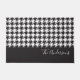 Dieses Design zeichnet sich durch ein klassisches Schwarz-Weiß-Hahnentrittmuster aus. In Kombination mit Ihrem eigenen personalisierten Text schafft diese Komposition eine moderne, schicke und einzigartige Türmatte.