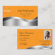 Mit dieser exquisiten Visitenkartenvorlage können Sie Eleganz und Innovation zeigen. Die Einrichtung ist in schimmerndem, silberfarbenem Weiß gehalten und mit einem feinen Glitzer auf orangefarbenem Hintergrund dekoriert. Passen Sie diese Visitenkarte einfach an Ihre Marke, Ihr Logo und Ihr (Mitarbeiter-)Foto an. Alles, was Sie sehen, sind Imitate silberne Folie und Imitat Glitzer, aber ein sehr hochwertiges Druckdesign. ♡ ich wünsche Ihnen viel Spaß mit diesem Artikel und viel Glück für Ihr Geschäft. ♡ von YOUR FAVORITE - entwirft :-) Moderne und berufliche Geschäftsausstattung. ♡ www.zazzle.com/store/your_favorite ♡ www.zazzle.com/store/favorite_markeplies ♡