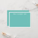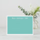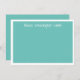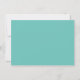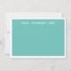 Flachkarte in aquamarin und weiß mit weißem, weißem, weißem, weißem, weißem Schriftart mit niedlicher Kalligraphie-Schrift und weitem weißem Rand. Auf der Vorderseite ist die Karte aquamarin, auf der Rückseite ist sie hell und auf der Rückseite weiß.