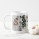 Die perfekte personalisierte Geschenkidee für Ihre Lieben - eine maßgeschneiderte Foto Collage Kaffee Tasse. Dieses Design besticht durch eine zeitlose, aber moderne Ästhetik, mit einem Rastermuster, das sechs Ihrer liebsten Fotos leicht zeigen kann, die direkt von Ihrem Computer oder Telefon heruntergeladen werden. Mit dem weißen Overlay können Sie Ihren eigenen Text hinzufügen, der mühelos mit der bereitgestellten Vorlage angepasst werden kann. Diese Tasse ist nicht nur ein guter Sake für besondere Anlass wie Weihnachten und Geburtstage, sondern auch eine nachdenkliche Geste, um Ihren Freunden und Ihrer Familie zu zeigen, wie viel sie Ihnen gemein haben.