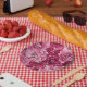 Feminine, elegante und klassische Teller mit rosa Binnenhaufen. Es ist perfekt für kleine Babyduschen, Brautpartys, Hochzeiten und ähnliche Veranstaltungen.
