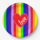 Klassische Regenbogenstreifen mit Herzfarbe Pappteller