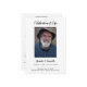 Klassisches und elegantes Beerdigungsprogramm mit klassisch weißem Hintergrund, das in jede Farbe, Fotos, die Begräbnisdetails, die Reihenfolge der Beerdigung und ein personalisiertes Dankeschön auf der Rückseite geändert werden kann.