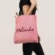 Dieser hübsche Totbeutel ist stabil und kräftig, mit einem rosa Pergament, das mit dem Namen in rosa, kursiven Schriftart geschrieben wurde. Personalisieren Sie mit zusätzlichen Texten, Fotos, etc. macht ein großartiges Geschenk für einen geliebten Menschen.