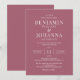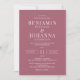 Klassische und elegante Hochzeitseinladung mit rosa Rosenholz und weißen Buchstaben. Nur Text mit traditioneller Formulierung. Optionen für digitales druckbares oder physisches Druckpapier. Personalisieren Sie es mit den Namen von Mr. und Mrs., Veranstaltungsort, Register, UAWG Informationen und alle Details, die Sie einschließen müssen. Es stehen passende Produkte zur Verfügung.