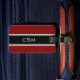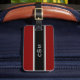 Klassische Gepäckmarke in Rot, Schwarz und Grau, geeignet für Damen und Herren. Das ist ein hervorragendes Geschenk für Absolventen. Fügen Sie ein Monogramm auf der Vorderseite und vollständige Kontaktinformationen auf der Rückseite. Bearbeiten Sie das Monogramm, den Namen und die Informationen, die Sie bevorzugen.