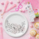 Mit dieser runden, blütenfarbenen Papiertafel, die durch anmutige schwarze Blumenbilder hervorgehoben wird, können Sie Ihre Feier mit müheloser Eleganz feiern. Die sanfte Dusche schafft einen romantischen Rahmen, während die eleganten Blumendetails moderne Kunst verleihen. Ideal für Hochzeiten, Brautpartys und Proben, passt es perfekt zu der vollen Blush & Black Floral Suite, die ein harmonisches und zeitloses Ambiente bietet.