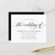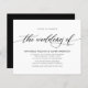Einfache, klassische und elegante Einladung zum Hochzeitsfeiern mit Typografie-Schrift in handgeschriebener Schrift ''Die Hochzeit von'' und Details in fett gedruckter Hauptstadt auf weißem Hintergrund. Es sind keine Umschläge enthalten.