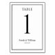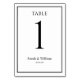Eine klassische Schwarz-Weiß-Hochzeitskarte, die mit jeder Tischnummer angepasst werden kann. Die Grafik erscheint auf beiden Seiten dieser Karte.