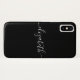 Personalisierte Schwarz-weiße moderne elegante Chic Script Name Phone Case. Passen Sie es mit Ihrem Namen für ein schicke, gürteleigene, einzigartige Design an.