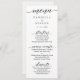 Einladende Hochzeitssuite Menü Karte Klassische Skriptkalligrafie Weiß und Schwarz. Teil der Sammlung Daniella Minimalistisch, modern und elegant.