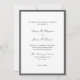 Elegante Hochzeitseinladung mit klassischem Drehbuch und schlichtem Text. Allgemeine Einführung: das Vergnügen Ihres Unternehmens wird bei der Hochzeit von. Schwarzer Text auf weißem Hintergrund in einem dunkelgrauen Rahmen. Der Rücken ist grau.