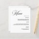 Ein weißer Hintergrund. Personalisieren und hinzufügen Sie Ihre Namen und das Menü. Schwarzer Text. 1 Blatt = 1 Menü, mit dem die Kante an Kante aufgedruckt ist.
