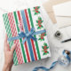 Stilvolle Hütte mit bunten Streifen Urlaubsgeschenkverpackung. Dieses klassische Design ist heilig mit Beeren mit roten und grünen Streifen. Mit diesem klassischen und stilvollen Design heben Sie Ihr Geschenk hervor.
