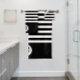 Knackiges Schwarz und Weiß geht nie aus der Mode. Es ist eine elegante klassische Kombination, die in jedem Badezimmer gut aussieht. Das zeitgenössische, einfache gestreifte Muster wird durch das spielerische Skript, das für den Anfang verwendet wird, gemildert.