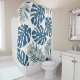 Klassische tropische Blätter mit goldgelbem Duschvorhang aus Kontur. Dieses schöne Design zeigt Blätter von Split Leaf Philodendron (Monstera deliciosa) oder Schweizer Käse Pflanze und Palmen Blätter in blau mit goldenen Kontur .