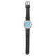Klassische Kinderuhr mit blauem Gesicht und schwarzem Gurt mit religiösem Taubendruck. Passen Sie diese Uhr an oder kaufen Sie, wie es ist.