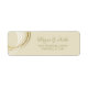 Ein klassisches Label mit goldenem Ringdesign, das durch künstlerisch weiße Pinselstriche übersät ist und auf einem cremigen Vanillehintergrund liegt. Personalisieren Sie es mit dem Link Anpassen. Dies ist Teil einer Kollektion mit einer passenden Einladung, Umschlag und anderen Hochzeitsessenziellen.