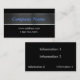 Setzen Sie Ihren Firmennamen in Blau wie gezeigt, ein oder ändern Sie leicht die Farb- und/oder Schriftartart und andere Informationen über die Front und auf der Rückseite dieser glatten schlichten schwarzen beruflichen schauenden Geschäftskarte. Einfach schöne, klassische, einfache, aber noble, fördernde Karte für irgendein Geschäft!