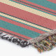 Klassisches Muster aus vertikalen Streifen in warmen, herbstlichen Farbtönen in Rot, aquamarin und Creme, hervorgehoben durch dünne schwarze Linien. Dieses zeitlose Design erinnert an Gefühle von Komfort, Wärme und Nostalgie. Ideal, um eine Touch saisonalen Stils zu Ihrer Zuhause hinzuzufügen.