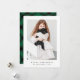 Einfach und klassisch ein Foto feierlich grün Frohe Weihnachtsfeiertage Grußkarte mit einem traditionellen rustikalen karierten Druck auf der Rückseite und minimale Typografie auf der Vorderseite.
