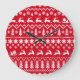 Klassische Weihnachten: Rotes, weißes Wintermuster Große Wanduhr
