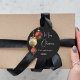 Für ein Weihnachtsgebäck oder eine Geschenkverpackung. Moderner schwarzer Hintergrund. Rot und goldfarben dekoriert. Personalisieren Sie Ihren Namen, Jahr. Text: Frohe Weihnachten