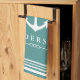 Strand herauf Ihren Küchendekor! Erhalten Sie einen Spaß untertriebenen Seevibe. Dieses machen klassische weiße Streifen und weiße das Anker-Silhouetteküchentuch, die den Ihren Familiennamen im Weiß kennzeichnet, ein großes personalisiertes Geschenk!