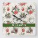 Klassische weiße und rote Blume Quadratische Wanduhr