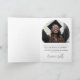 Faltete Abschluss Dankeschön-Karte mit Ihrem Foto mit einem dünnen, weißen Bogen-Overlay und dem Text "Danke" in einem eleganten Schriftart mit Ihrem Namen, Jahr und Schulname unten. Zusätzliche Foto und benutzerdefinierte Dankeschön-Nachricht innen. Schwarzer Text auf weißem Hintergrund. Farben und Schriftart können individuell angepasst werden.