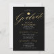 Moderne, minimalistisch-schlichte Schwarz-Gold-Foto-Abschluss-Zeremonie und Party Einladung-Vorlage mit einem stilvollen schicken schicken trendigen Kalligraphie-Skript. ++++++++++++ Einfach mit individuellem Foto, dem Namen des Absolventen, dem Abschluss, dem Namen der Schule, der Zeremonie des Abschlusses und den Einzelheiten des Party personalisieren!